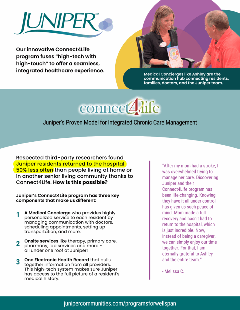 Connect4Life seamlessly coordinates your medical care and everyday living with high-tech convenience and a personal touch—all guided by your own medical concierge.